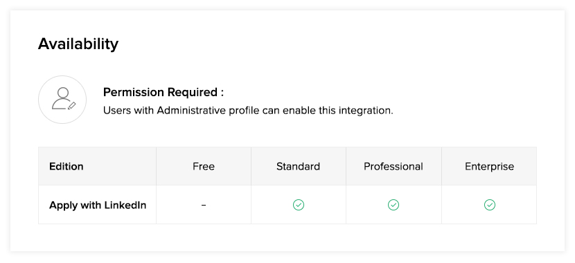 ATTENTION: The user must be an admin on LinkedIn Recruiter/ Jobs dashboard and have at least one of the following LinkedIn products in order to enable this feature: