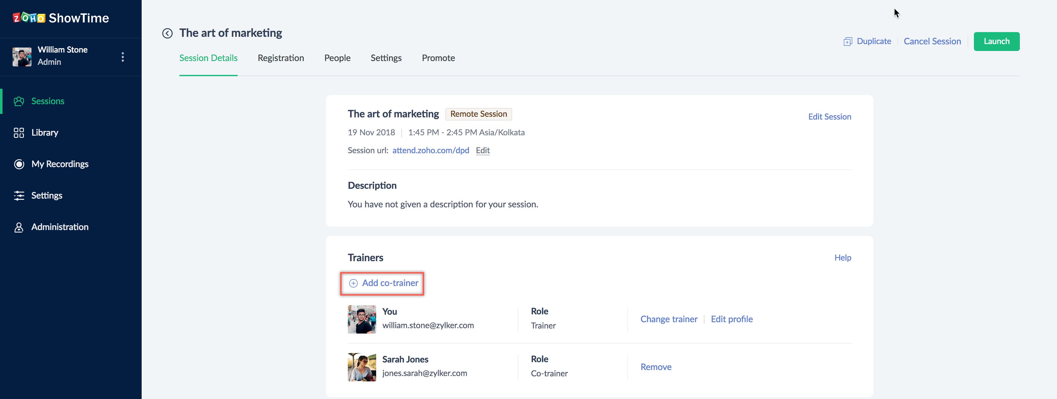 - Click Add Co-trainer under the Trainer section.
