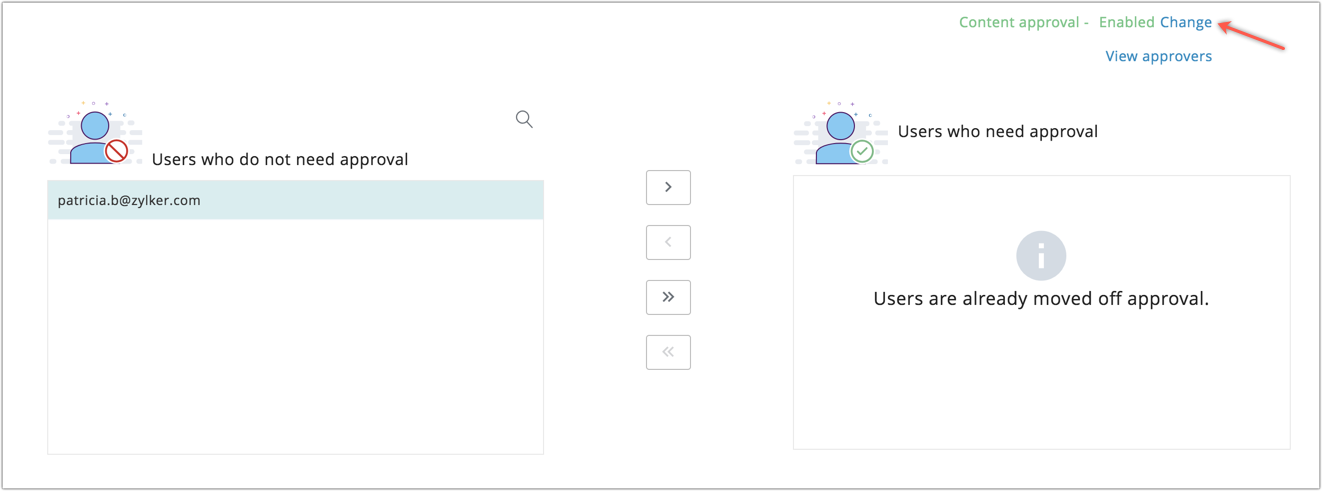 Users with admin privileges will be given approver status. You can view them by clicking the View approvers link given in the Content approval section.