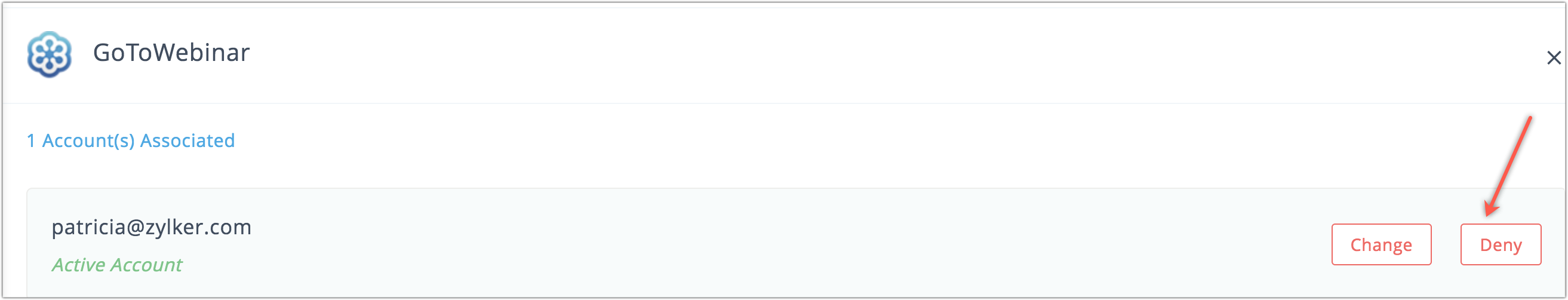 4. Click the Deny button beside the account name.
