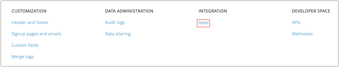 2. Select Apps under Integrations.