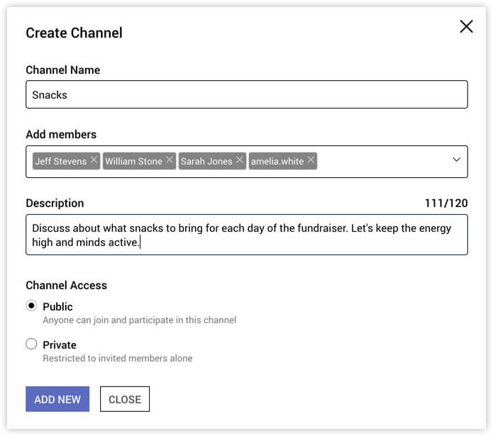 Edit the channel name and description if necessary. You can include or remove members in the Add Members text box.