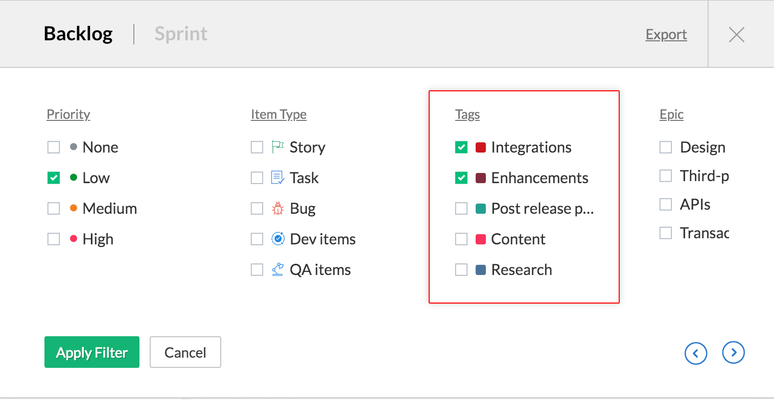 Custom tags are labels that you define for a particular set of work items in your backlog or sprint. They are the quickest and easiest way to group a similar set of work items based on a specific category.