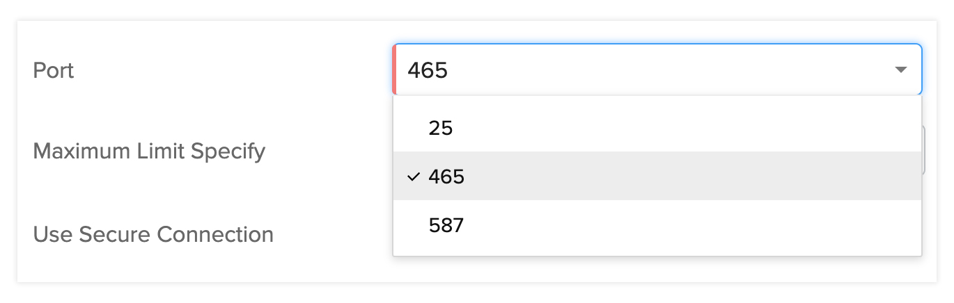 1. Port number - The port number of your company's SMTP server. The Email relay supports the following port numbers: 25, 465, 587.