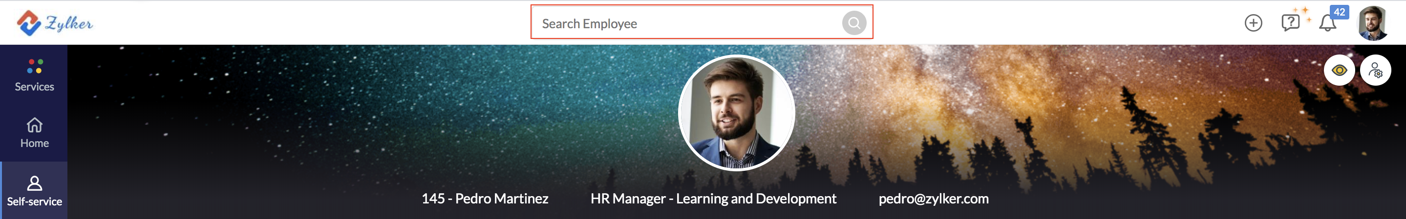 The employee global search feature allows an employee to quickly look up the information of any employee in the organization.
