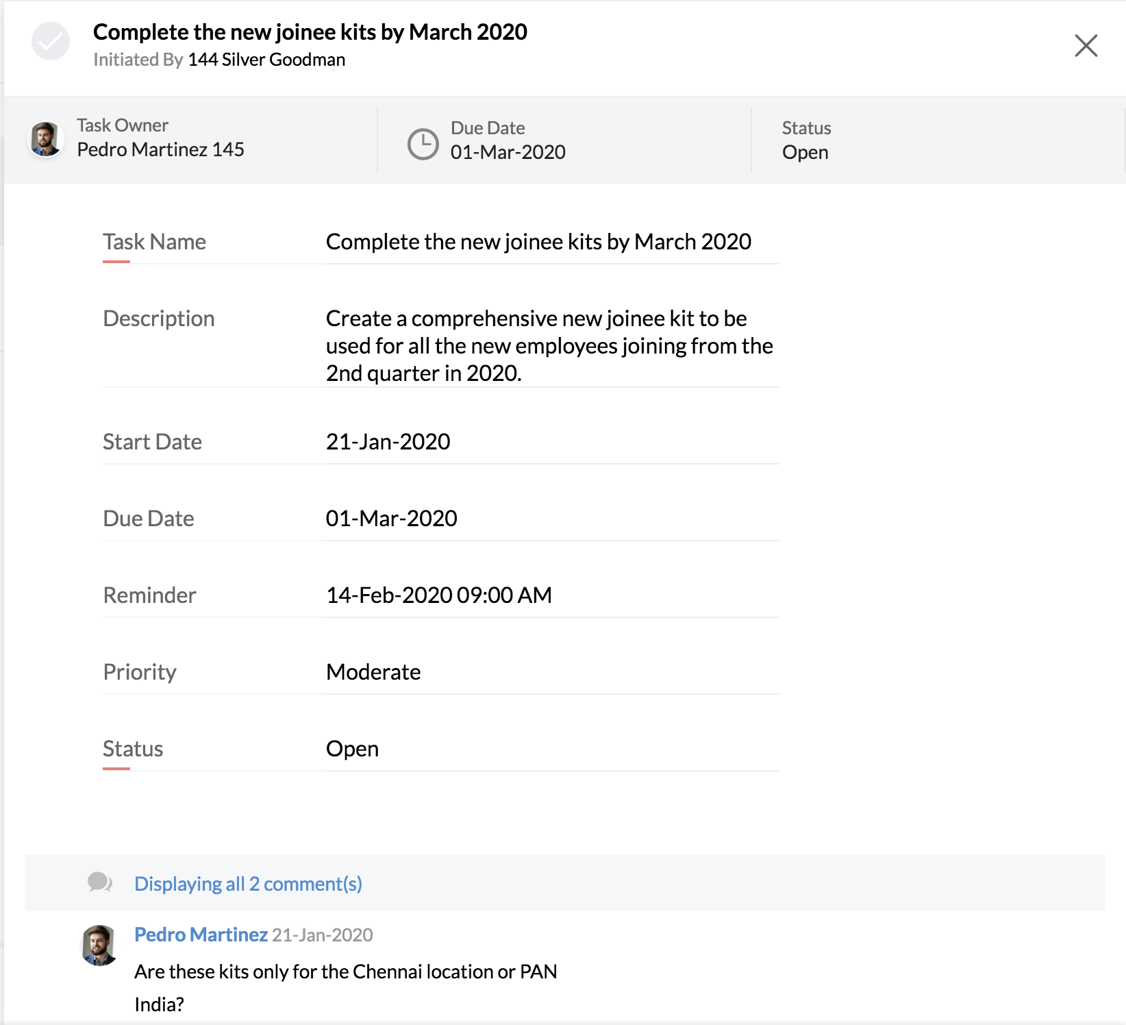 3. Add comments, if required, to communicate with the employee who initiated the task.
