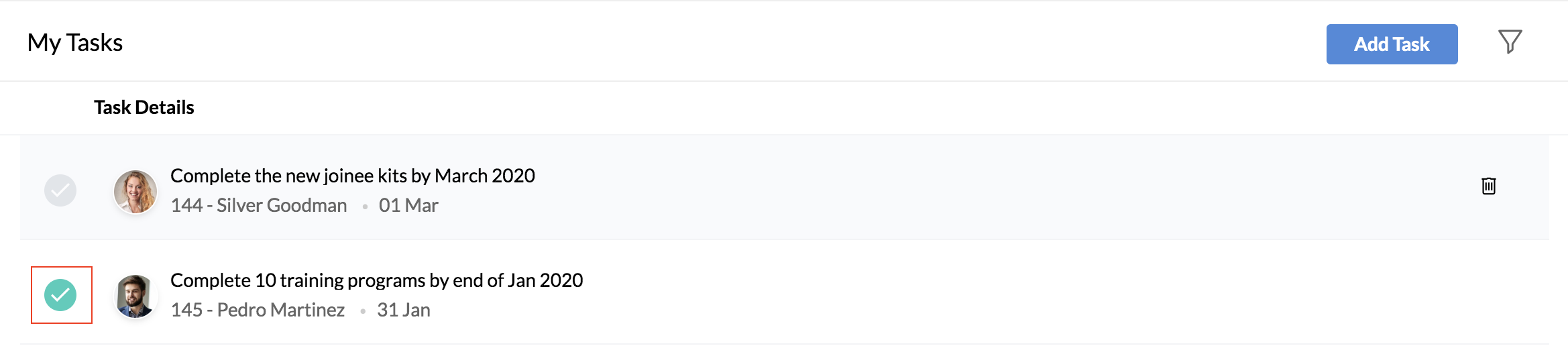 Keeping track of many activities at work may sometimes be a difficult task. The Tasks feature lets you add tasks and set reminders to alert the appropriate person in time to complete the task. Managers and admins can also assign tasks to employees.