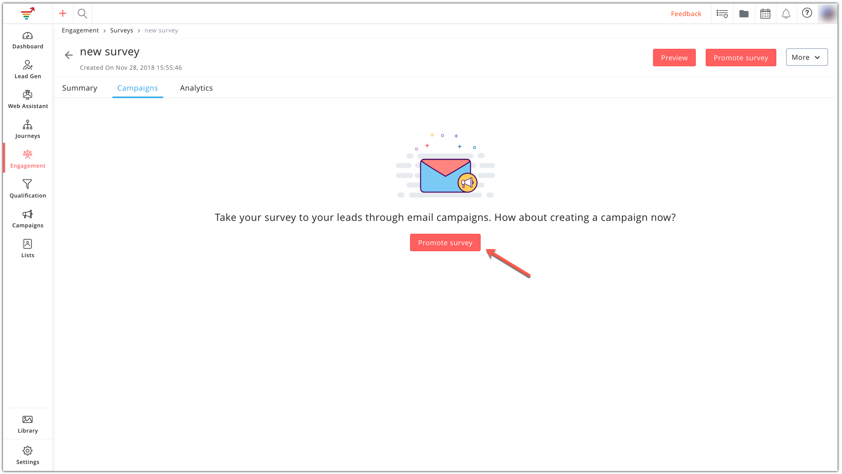 From the Navigation Toolbar, click Engagement and choose Survey.