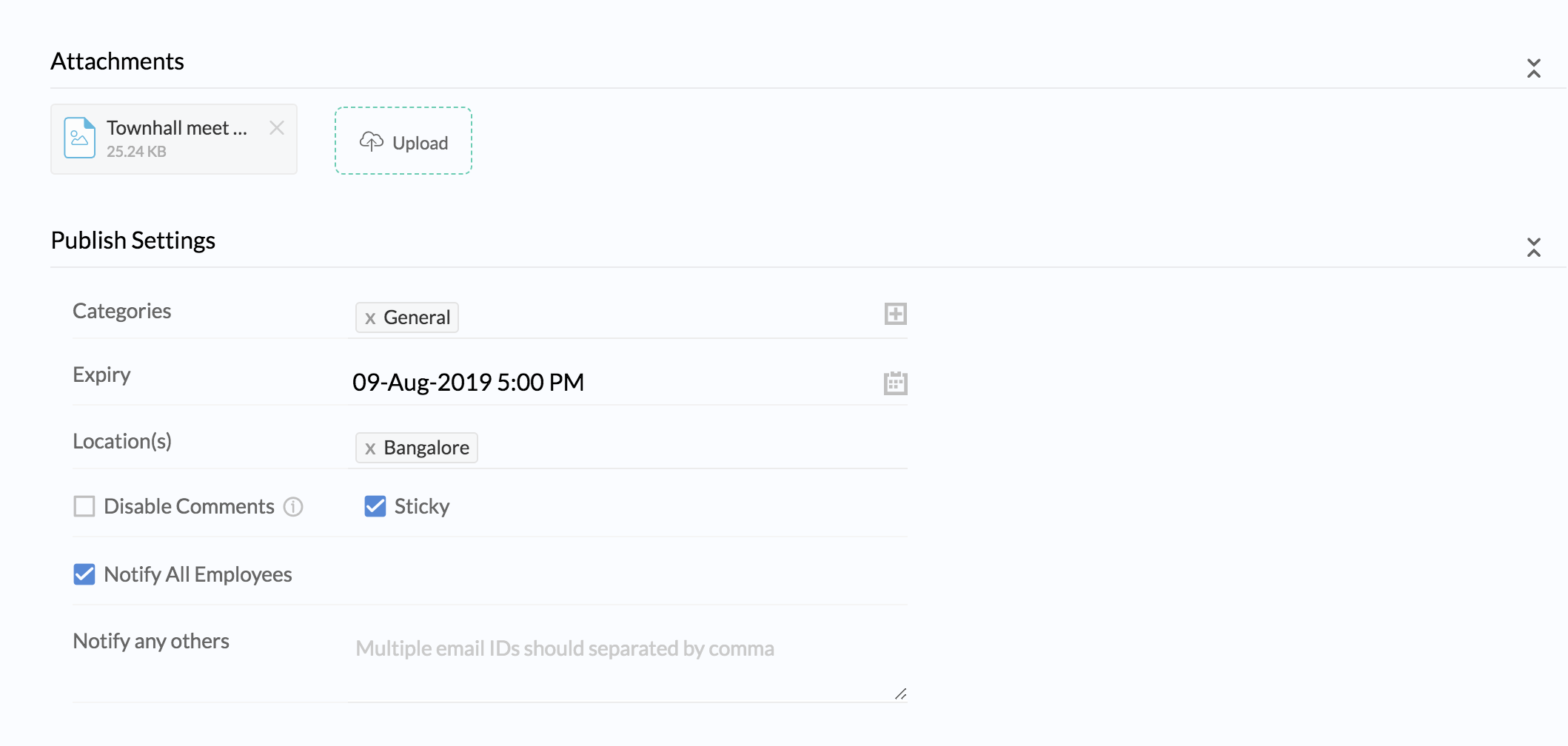 9. Enable Notify all employees if you would like the announcement to be viewed by all the employees of the selected locations.