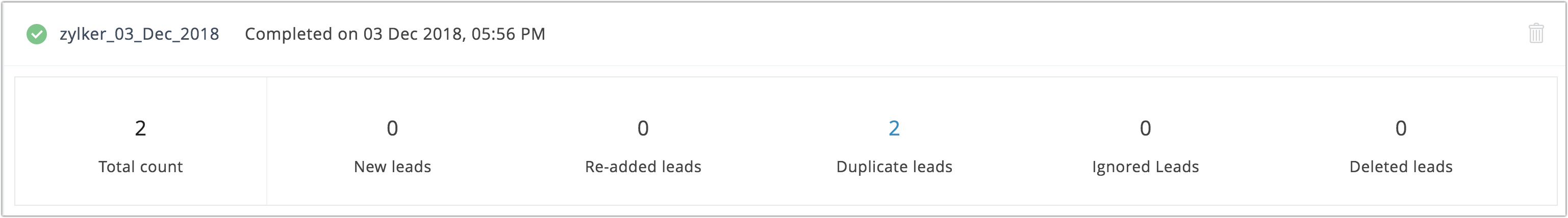 | Duplicate leads | Leads already present in MarketingHub account. |