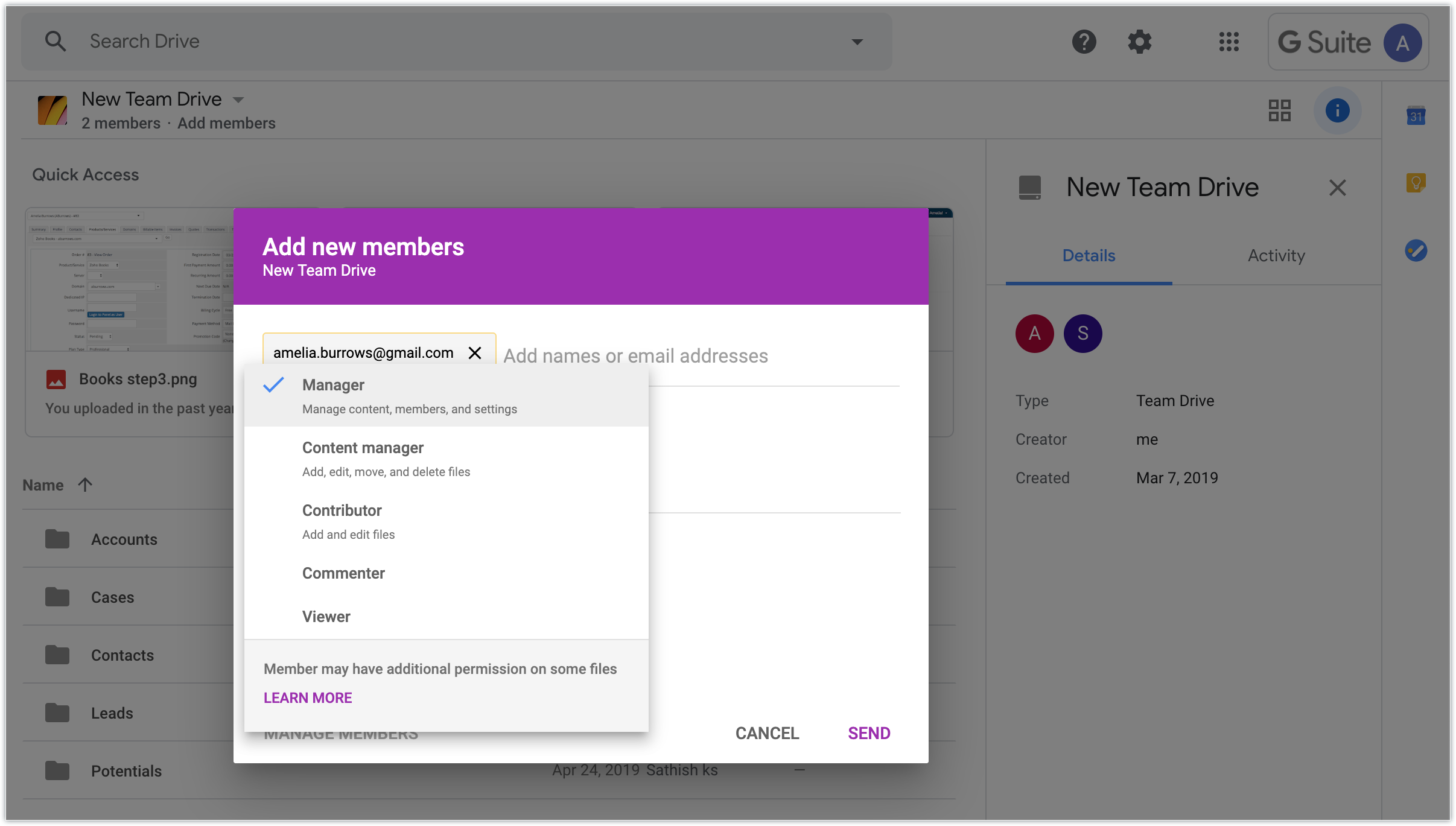 To share files from Zoho CRM to Team Drive