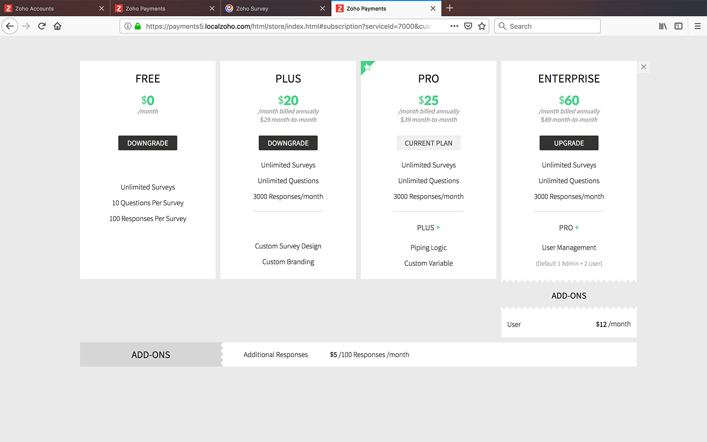 To cancel your subscription with Zoho Survey: