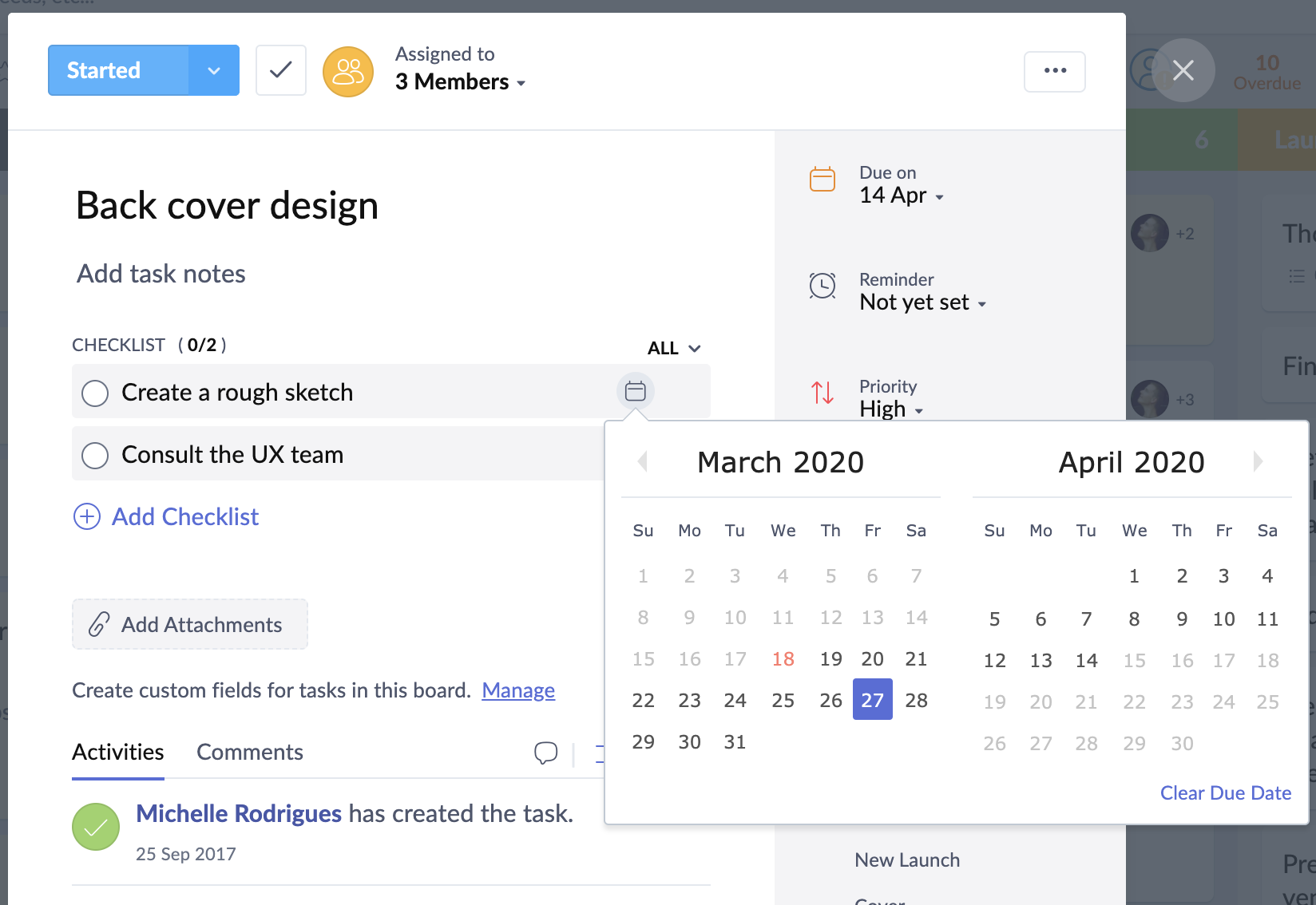 Admins of the Board, members who have permission to create Sections and Tasks, and members who have permission to edit Tasks within a board can add due date to checklist items.