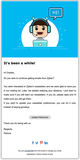 To avoid these consequences, we recommend you regularly observe your campaign reports for inactive leads. Filter them separately and win them back with reengagement emails. Through re-engagement emails, you can remove uninterested people from an inactive list and maintain a hygienic list with active, interested leads.