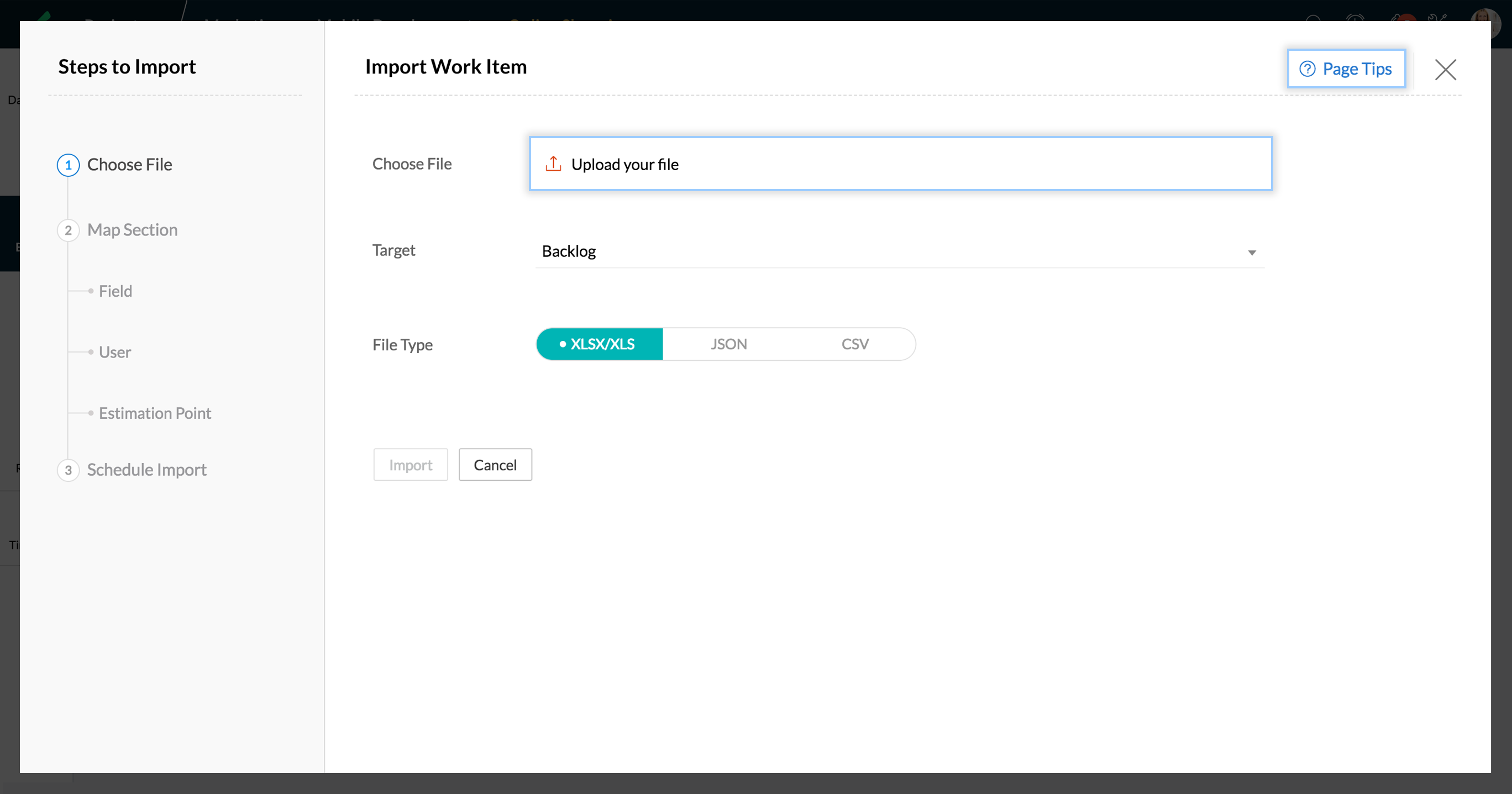 Zoho Sprints only supports XLS, CSV, XLSX, and JSON files.