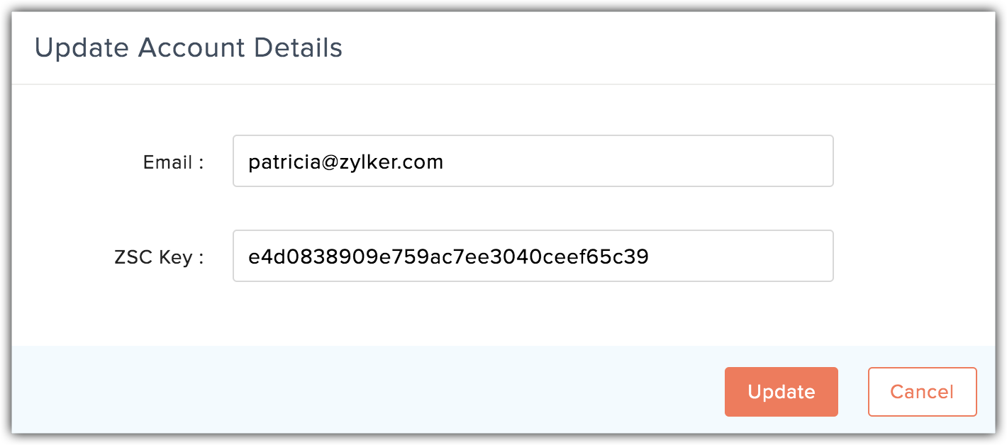 You can regenerate your ZSC (Zoho Service Communication) key by copying the ZSC key from your Zoho Invoice account and pasting it in your Campaigns account.