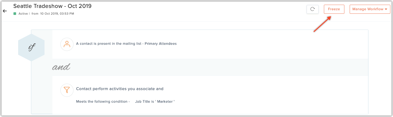 Note : For a safe shut down, you can freeze the workflow and wait for it to perform actions on the contacts who have already entered the workflow, and then shut it down.