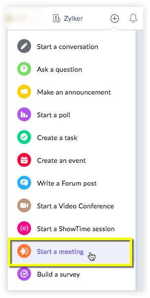 You can start meetings from the Events module of Zoho Connect including all participants of the event you have scheduled.