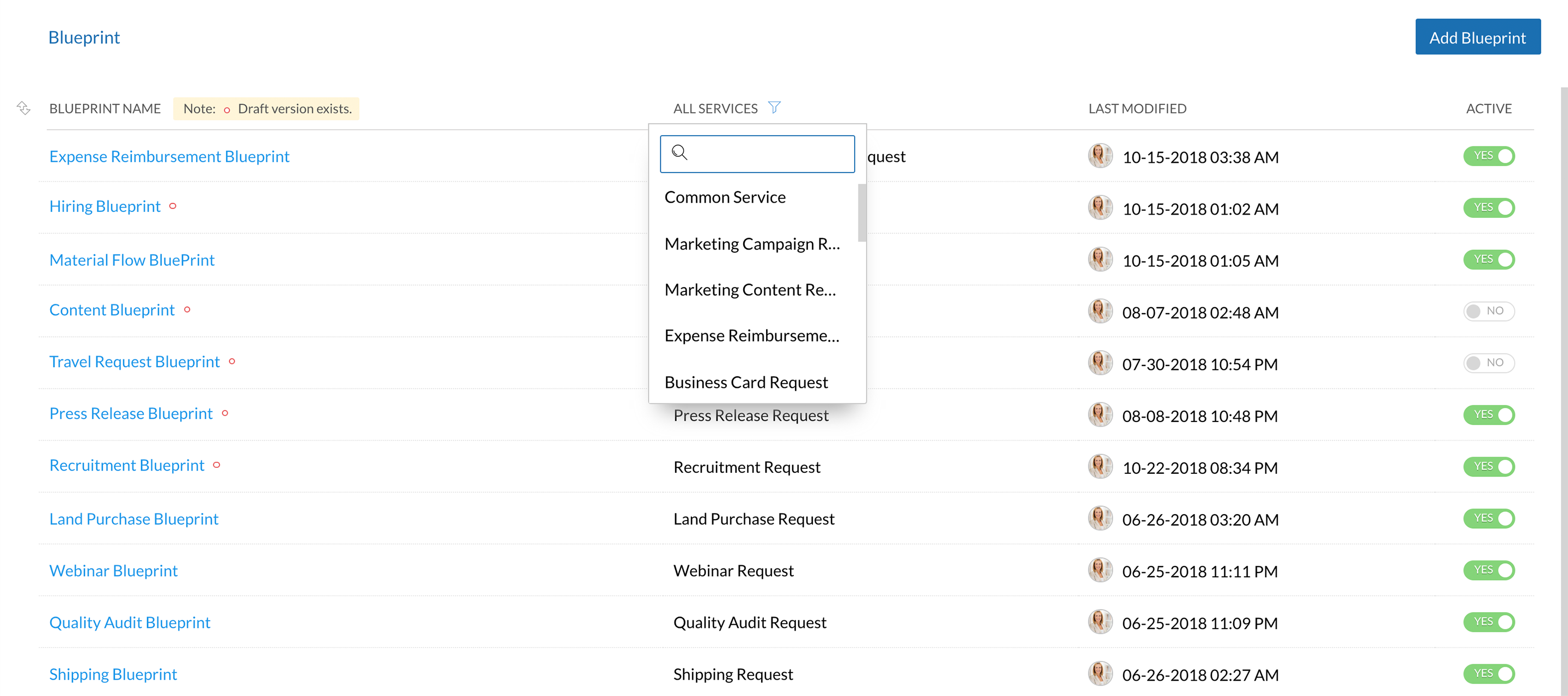 - Toggle the button to the right of your blueprint name to deactivate the corresponding blueprint. Toggle the button again to activate it.