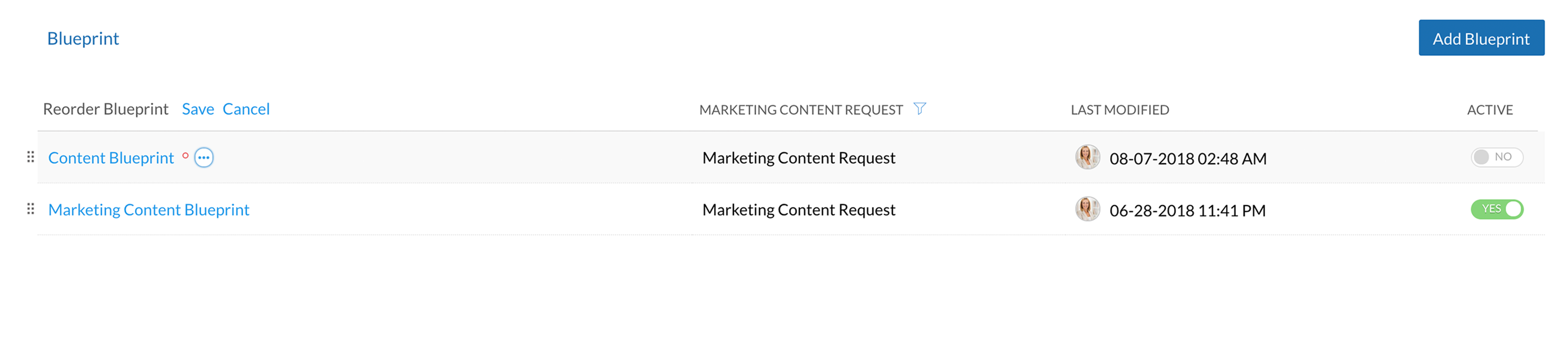 Reordering helps users to prioritize blueprints. Once your blueprints are filtered based on