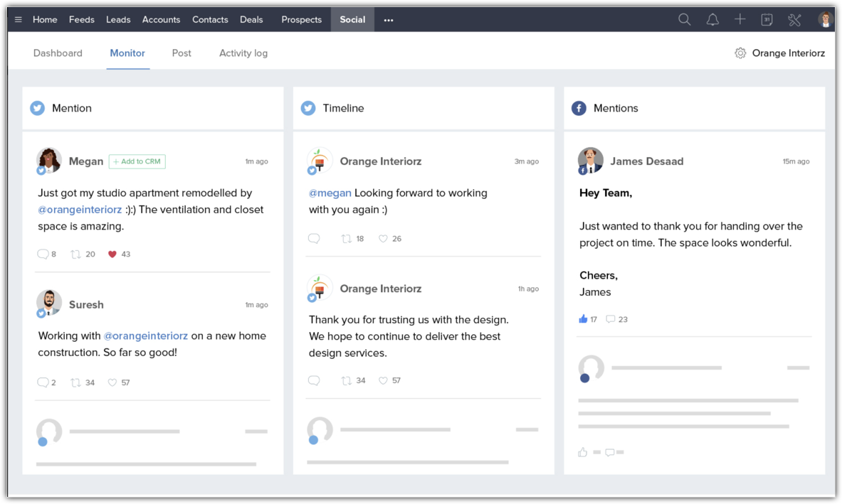 In this case, Orange Interiorz scans the business cards and add the details as leads in CRM.