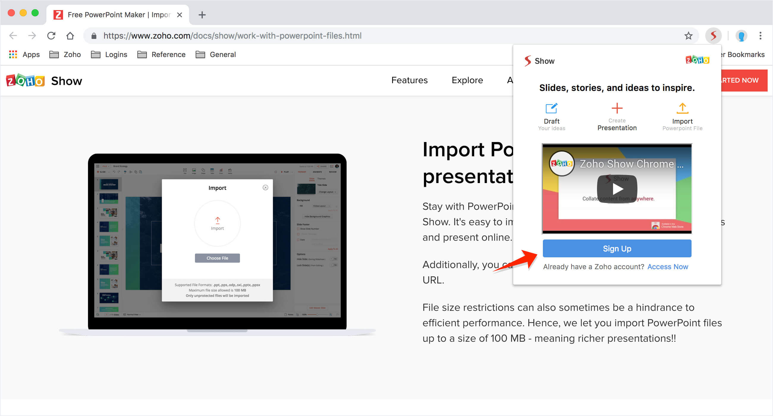 To sign up with Zoho Show,