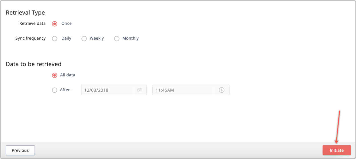 You can edit the retrieval details such as retrieve interval, data to be retrieved and sync contacts configuration by choosing the Edit retrieval details in the Edit drop down.