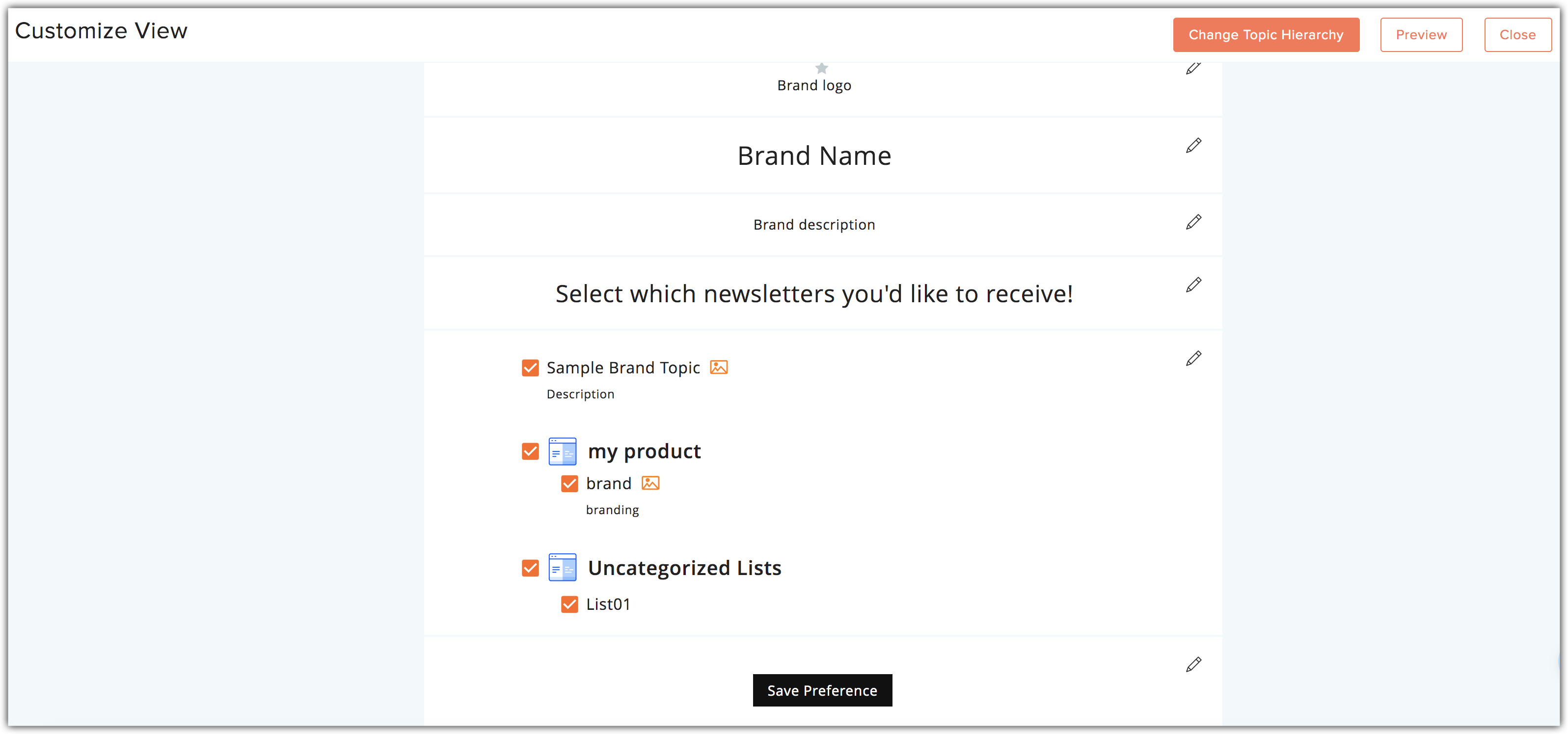 This hierarchy makes things a lot easier for businesses that have a wide range of products as it helps them create topics based on products. Besides this, you can also add the topics that represent the entire brand/organization. For example, mailing lists on annual event/conference announcements, seasonal offers on all products, and other general updates can be grouped into topics under your brand while product-specific topics can go under each product.