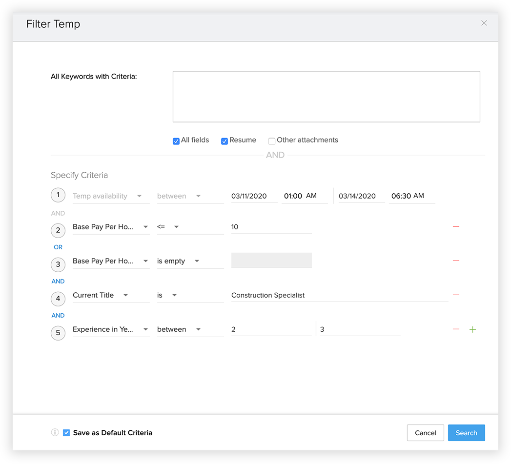 2. Matching temps will be displayed in Roster View. You can also customize criteria for finding temps.