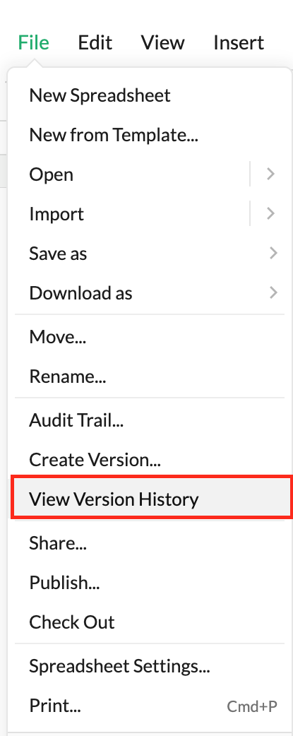 4. Simply click on a version to preview it on the spreadsheet at left.