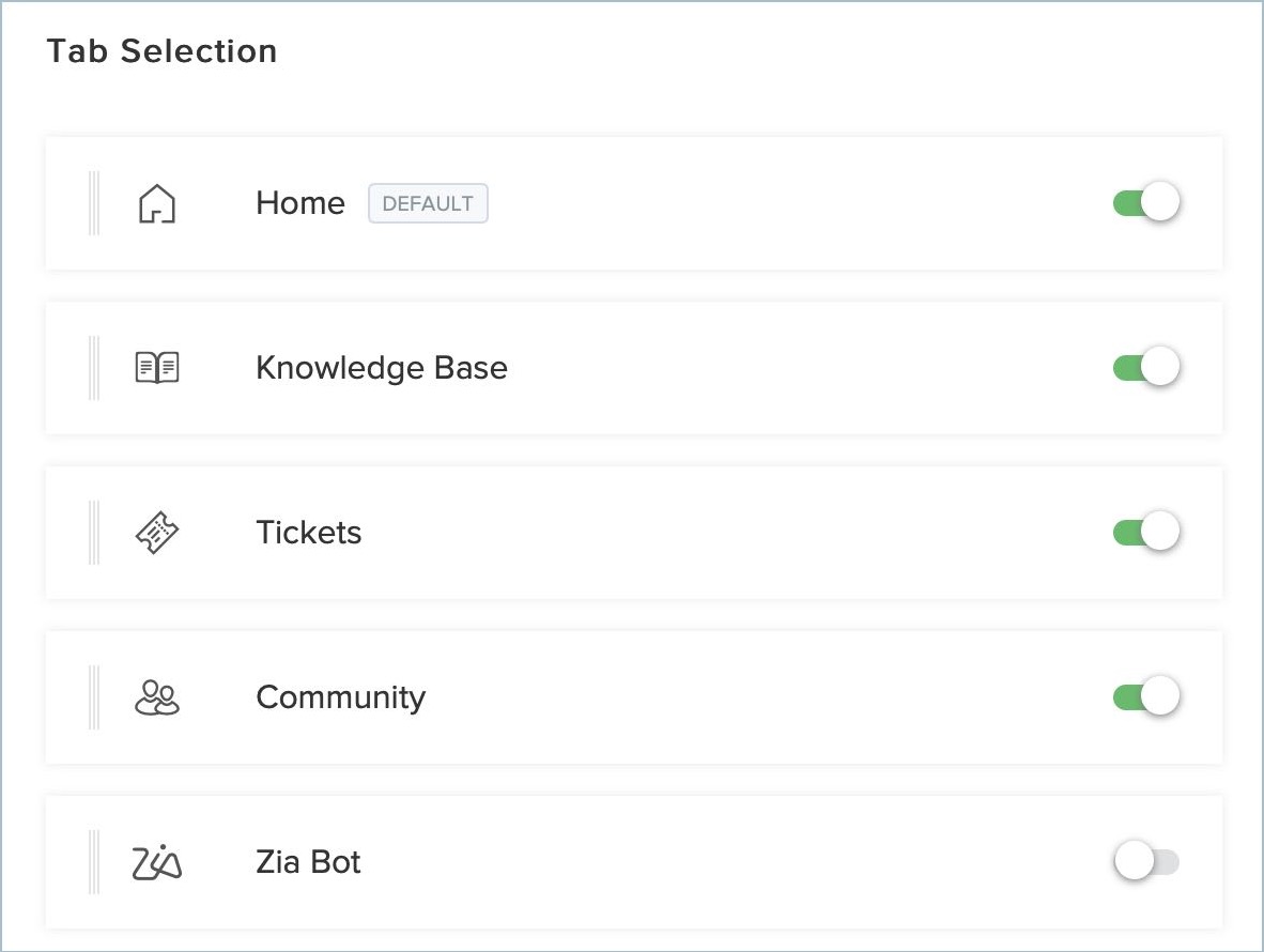 Tab Selection: The help modules that you want to make available through the ASAP add-on. The toggle switches next to each module help you enable or disable the modules, as required.