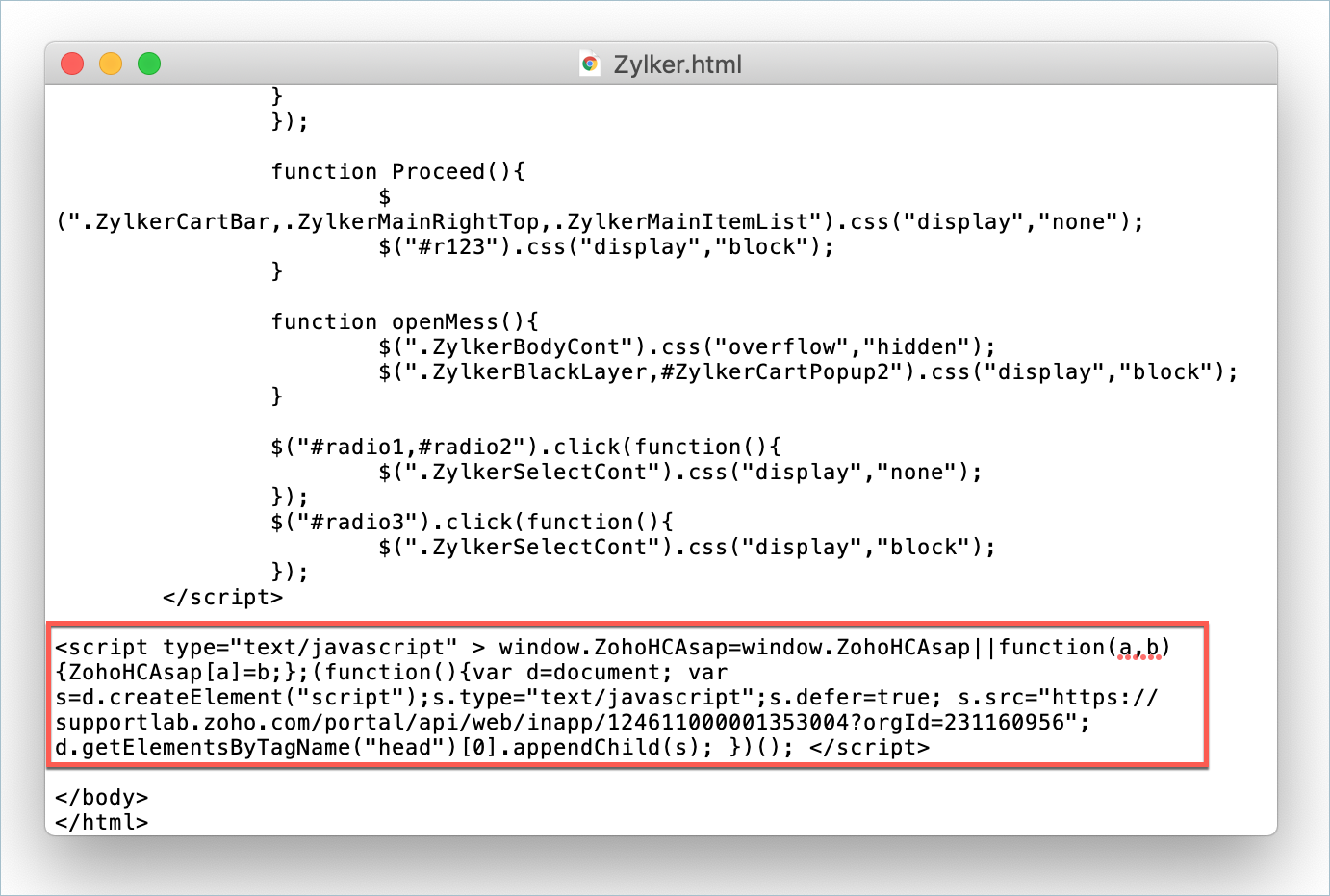 Copy the code snippet and paste it before the closing <body> tag in your website's HTML source code.
