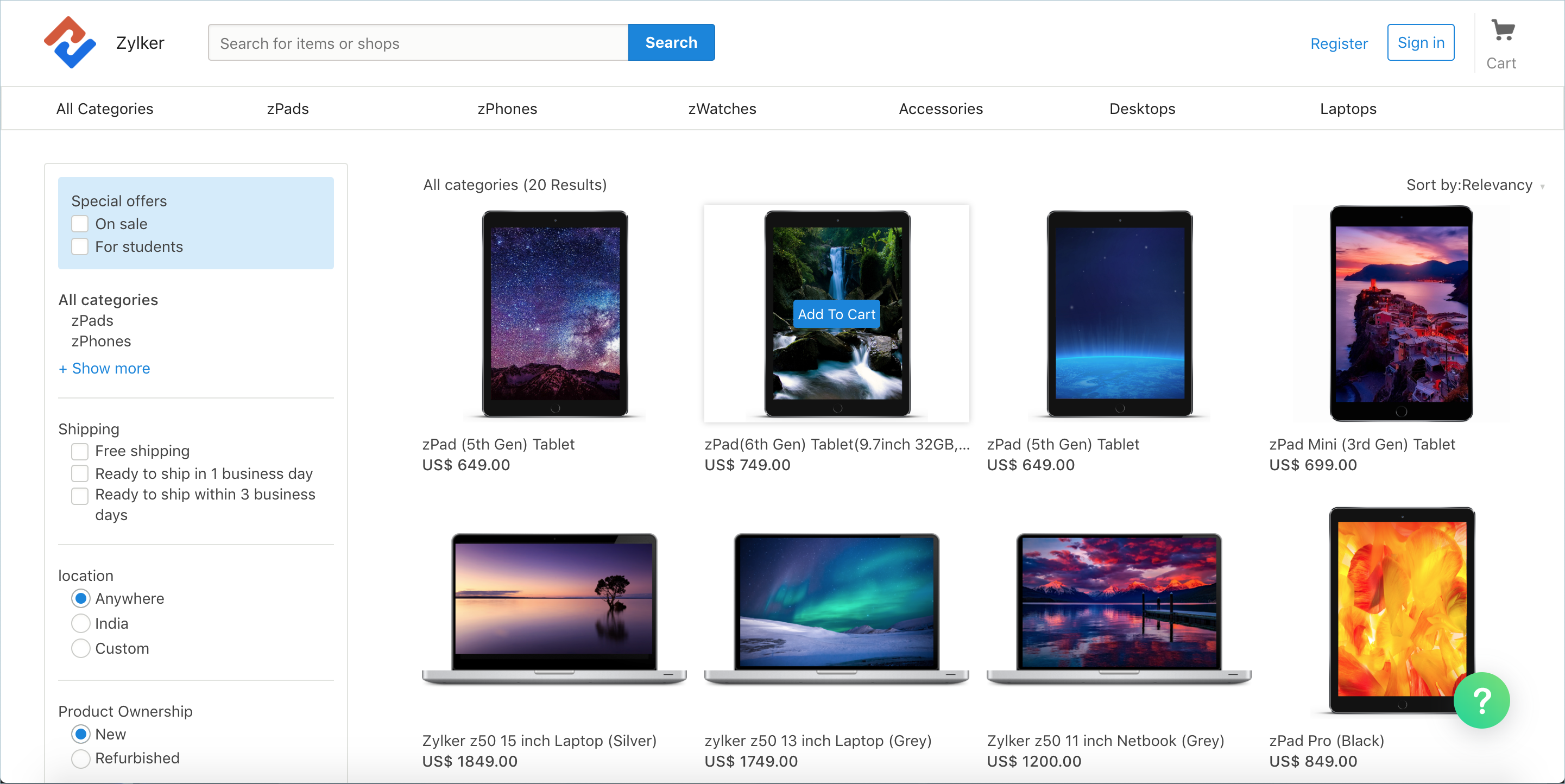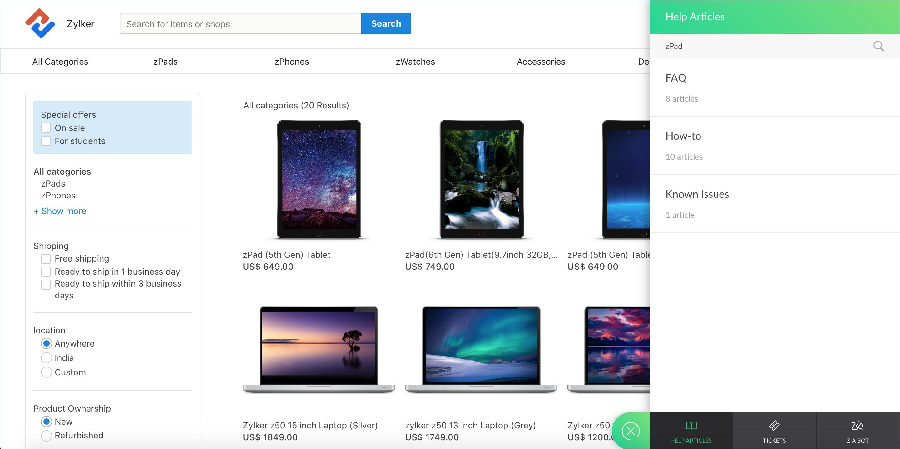 You can choose to display the same add-on across all the pages of your website or a unique add-on for each webpage. Following the latter approach would deliver contextual support for your customers. For instance, if you run an e-commerce business, you can display a department-specific add-on, on the page for each department, i.e., the add-on for the Electronics page can be configured to display help articles related to electronics alone, while the add-on for the Footwear page can be configured to display help articles related to footwear alone, and so on.