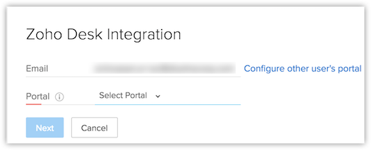 - In Zoho Desk Integration page, click Configure other user's portal.