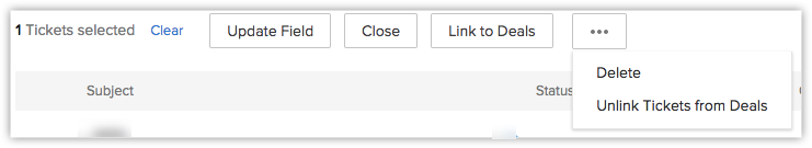 Click More option to Unlink Tickets from Deal. - Select the Deal from the list of deals.