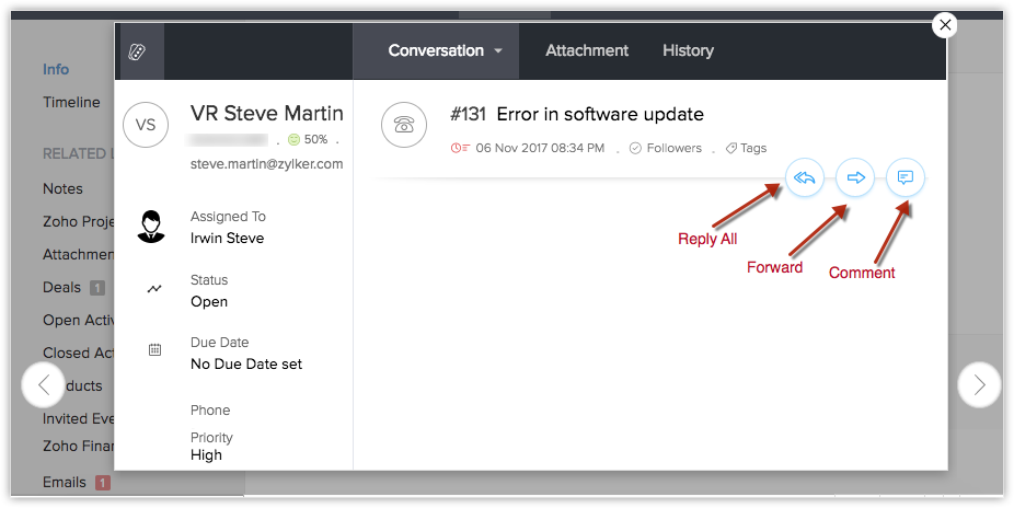 - New Comment - To view a new comment on a ticket by a lead/contact/potential customer.