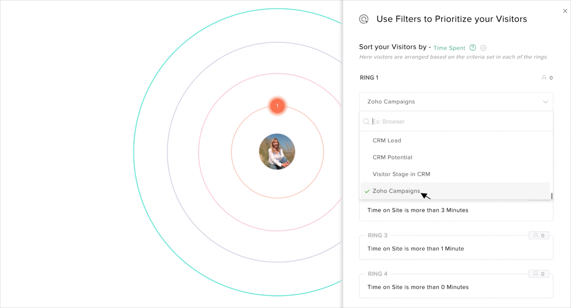 - Then choose an action based on which you would like to prioritize the visitor in the tracking rings.